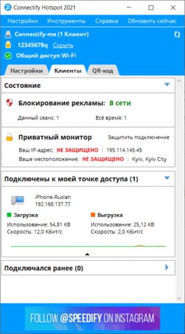 Connectify Hotspot на русском доступен официально. Бесплатная версия программы имеет ряд ограничений:
